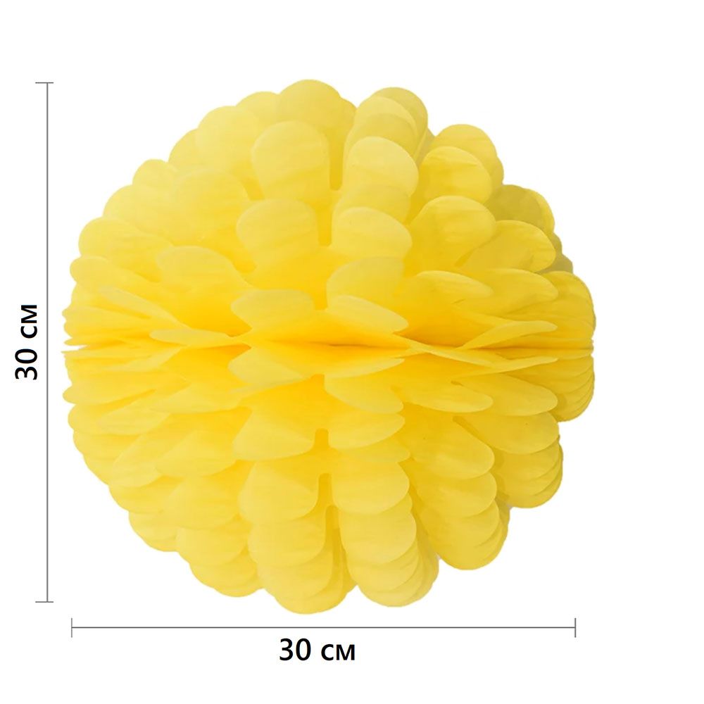Бумажное украшение Цветочный шар-соты 30 см, желтый