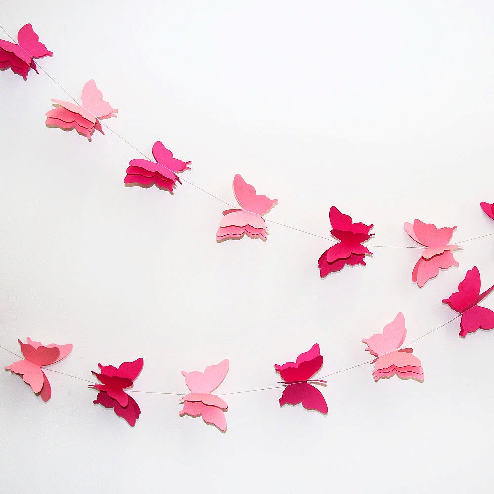 Расправьте крылья и создайте праздничное настроение. Гирлянда идеально подходит для украшения детских комнат, свадеб, окон, стен и фотозон. Объемные бабочки на нитке добавят нежности и легкости интерьеру.