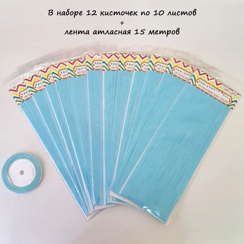 Гирлянда тассел 12 кисточек по 10 листов, голубой