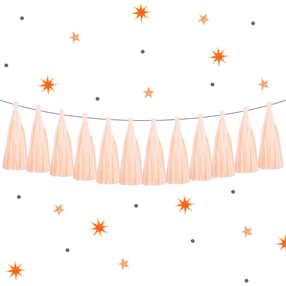 Гирлянда тассел 12 кисточек по 5 листов, персиковый