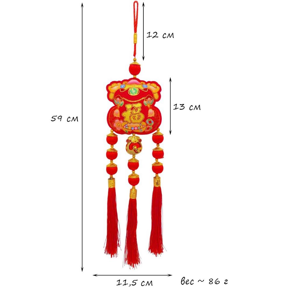 Китайская подвеска 11,5х59см, Денежный мешок