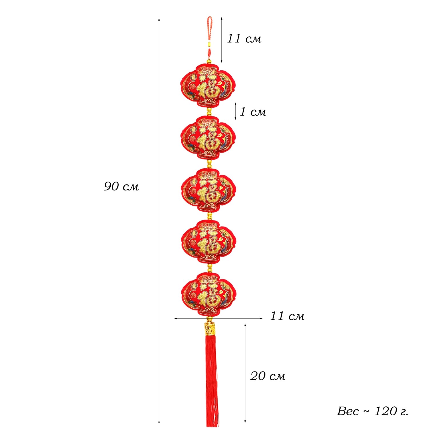Китайская подвеска 11,5х90-95см, Фонарики