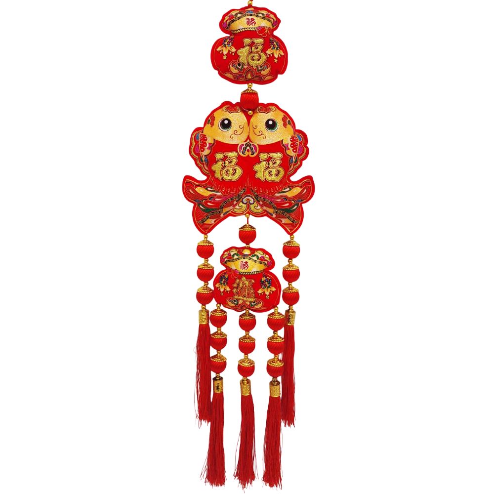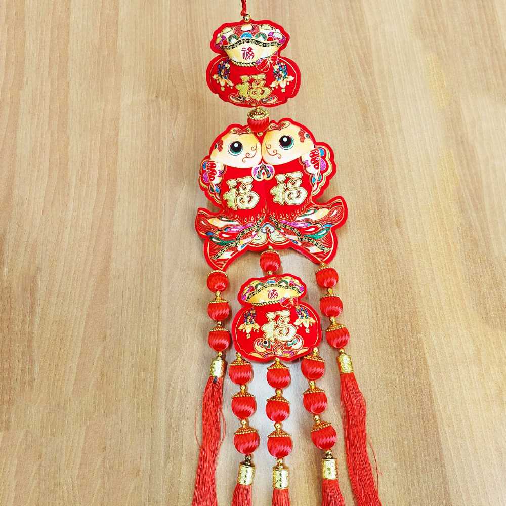 Китайская подвеска 20х83см, Две Рыбки + Денежные мешки - 1 шт