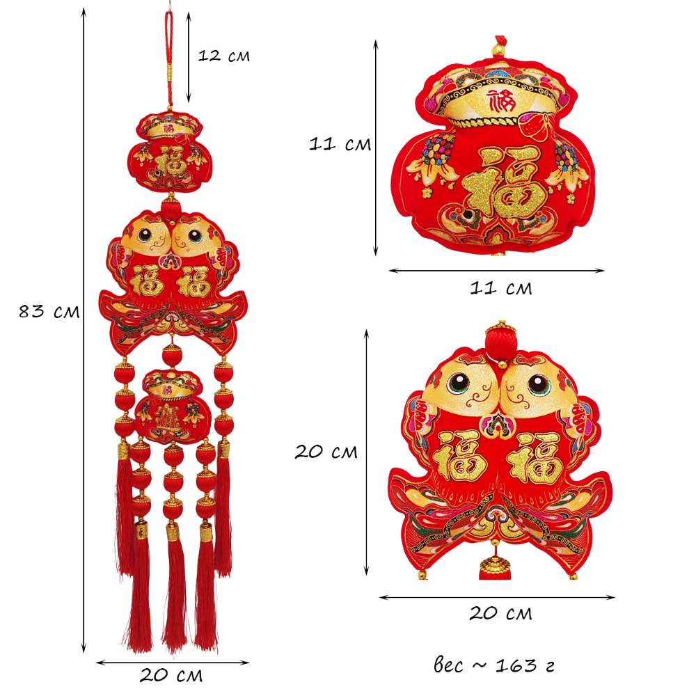Китайская подвеска 20х83см, Две Рыбки + Денежные мешки
