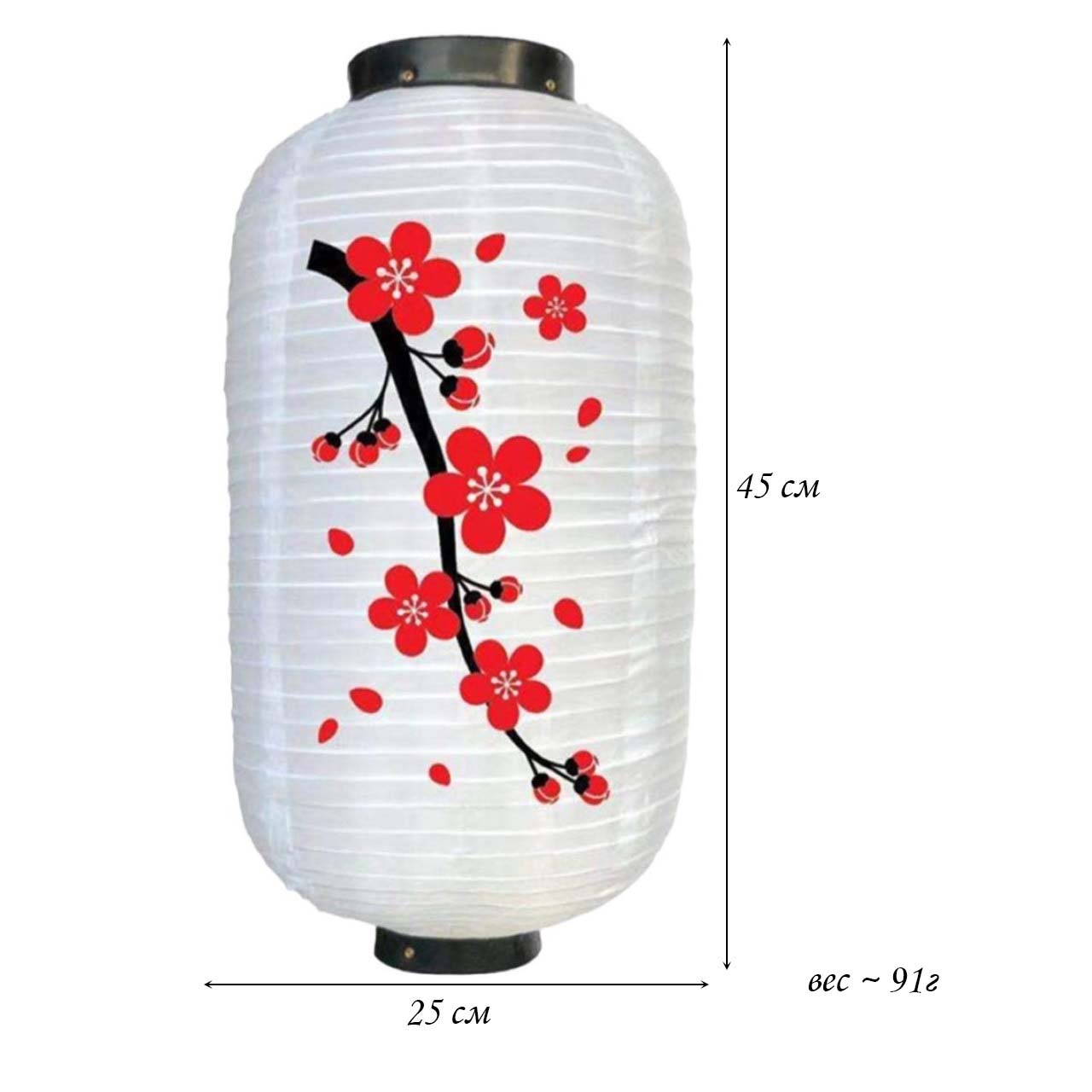 Китайский фонарь Цилиндр "Сакура" крупная 25х45 см, белый