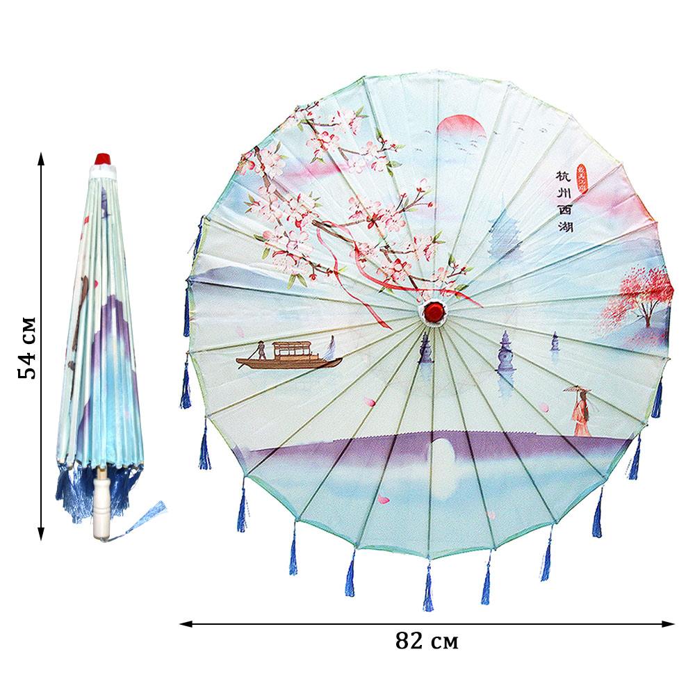 Китайские тканевые зонтики цветочные с кисточками 82х54 см