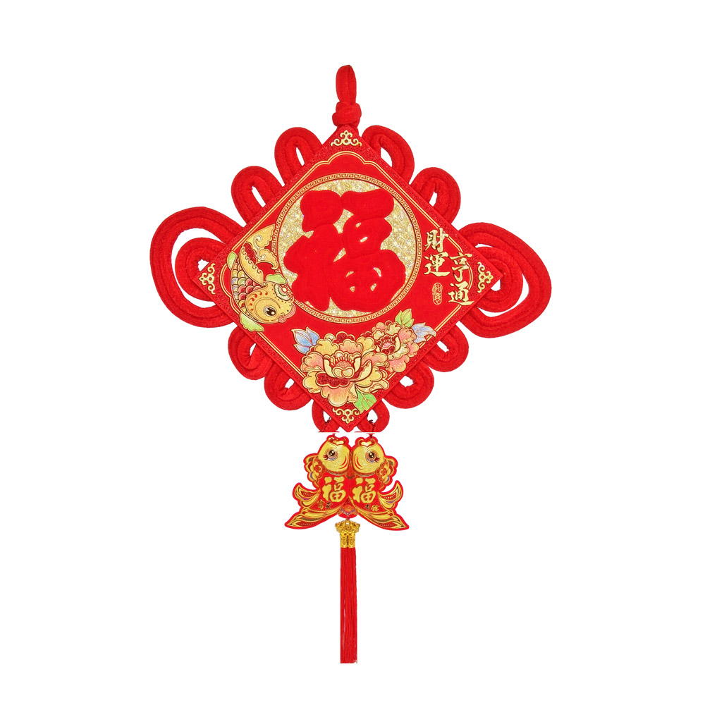 Традиционный китайский узел в форме ромба с символичным дизайном. Яркое сочетание красного бархата и золотых элементов создает эффектный акцент в интерьере.