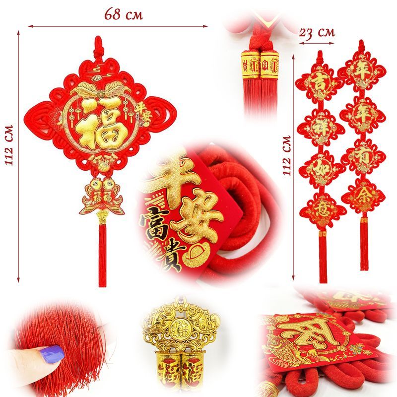 Китайский узел ромб золото НАБОР 2шт (68х112см + 23х112см) рыбки, Золотое Яблоко
