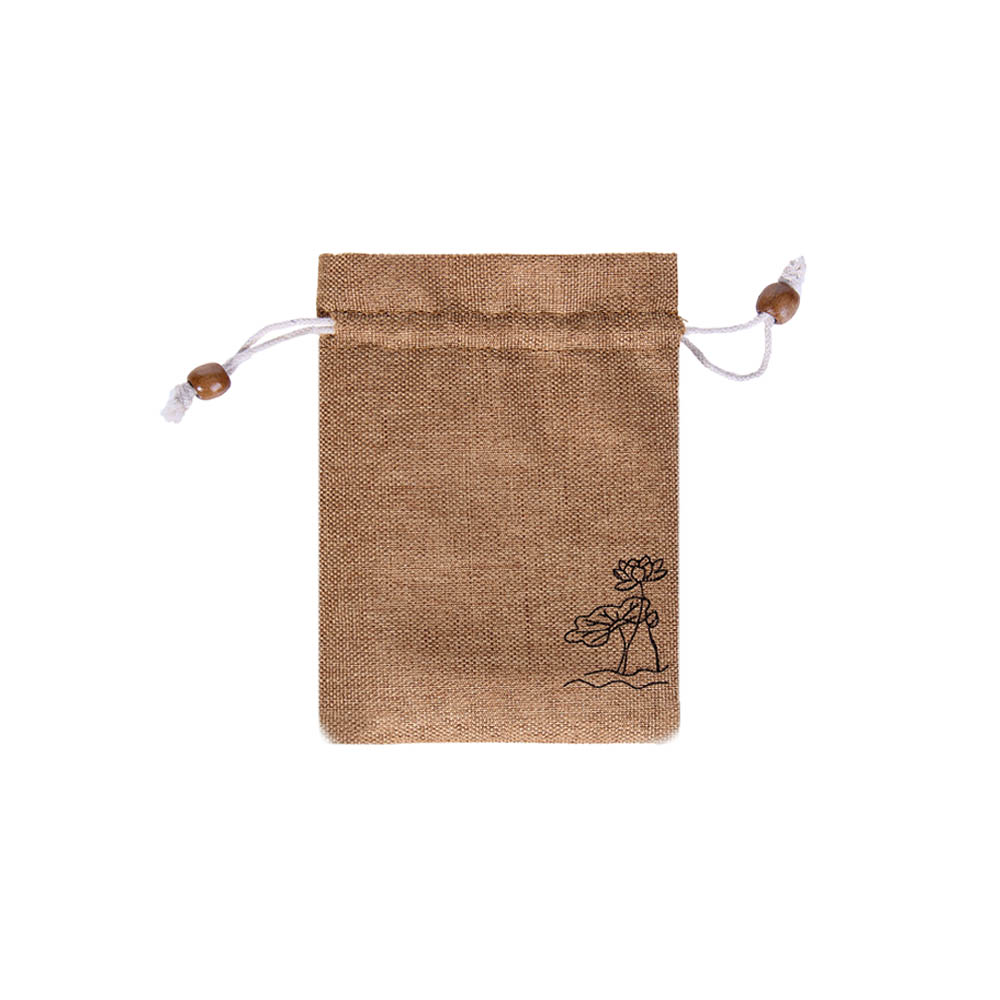 Мешочек из искусственного льна с орнаментом 10х14 см, песочный