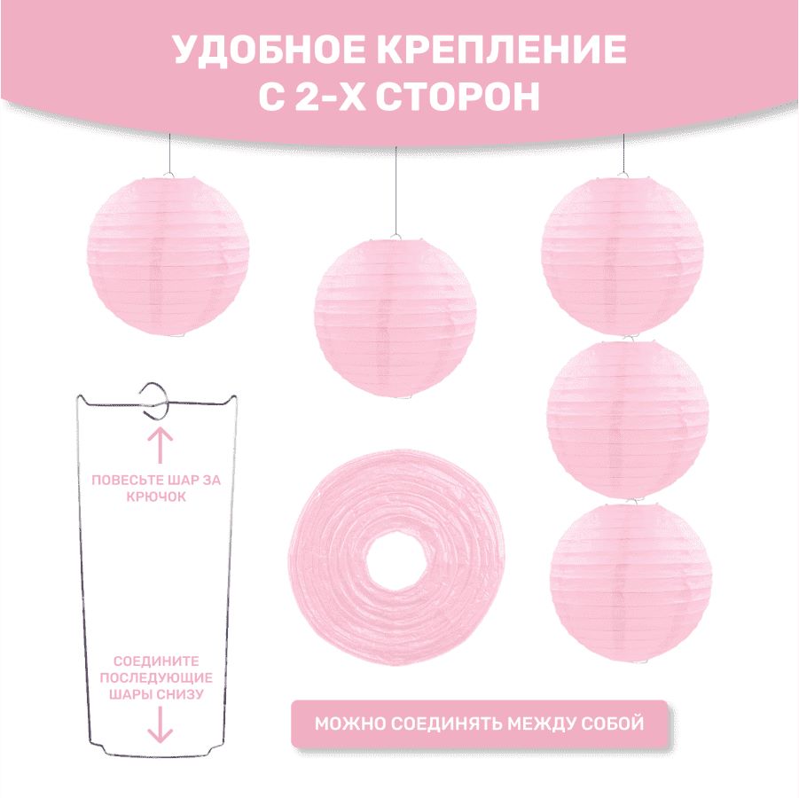 Комплект подвесные фонарики 30 см х 8 шт, розовый