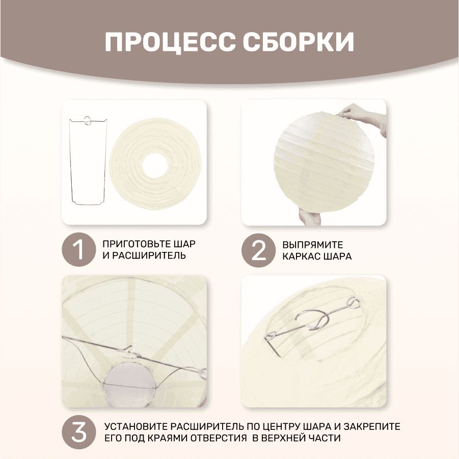 В комплект входит 8 бумажных фонариков и лента атласная.