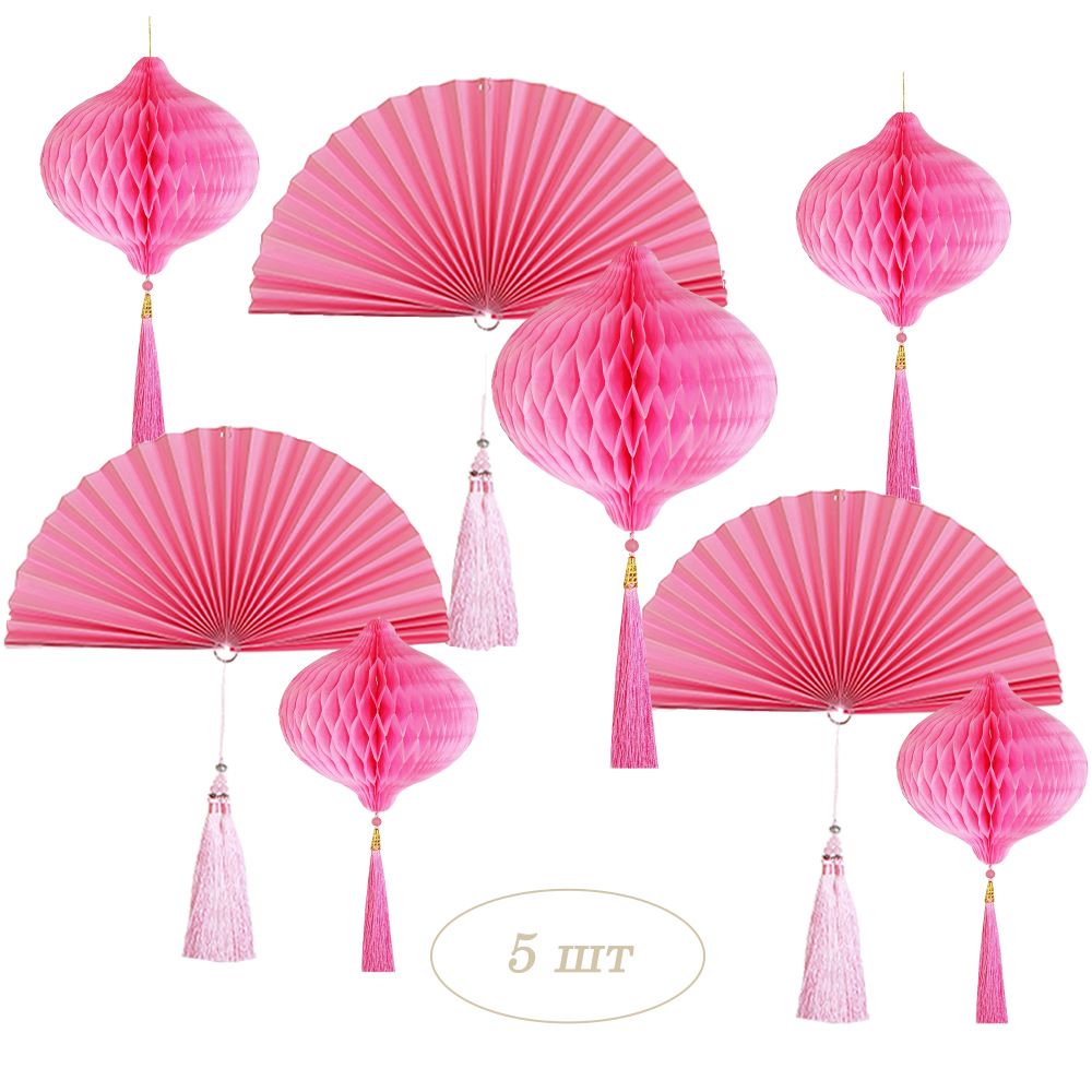 Набор украшений для праздника №70 включает пять шаров-сот и три веера-гармошки.