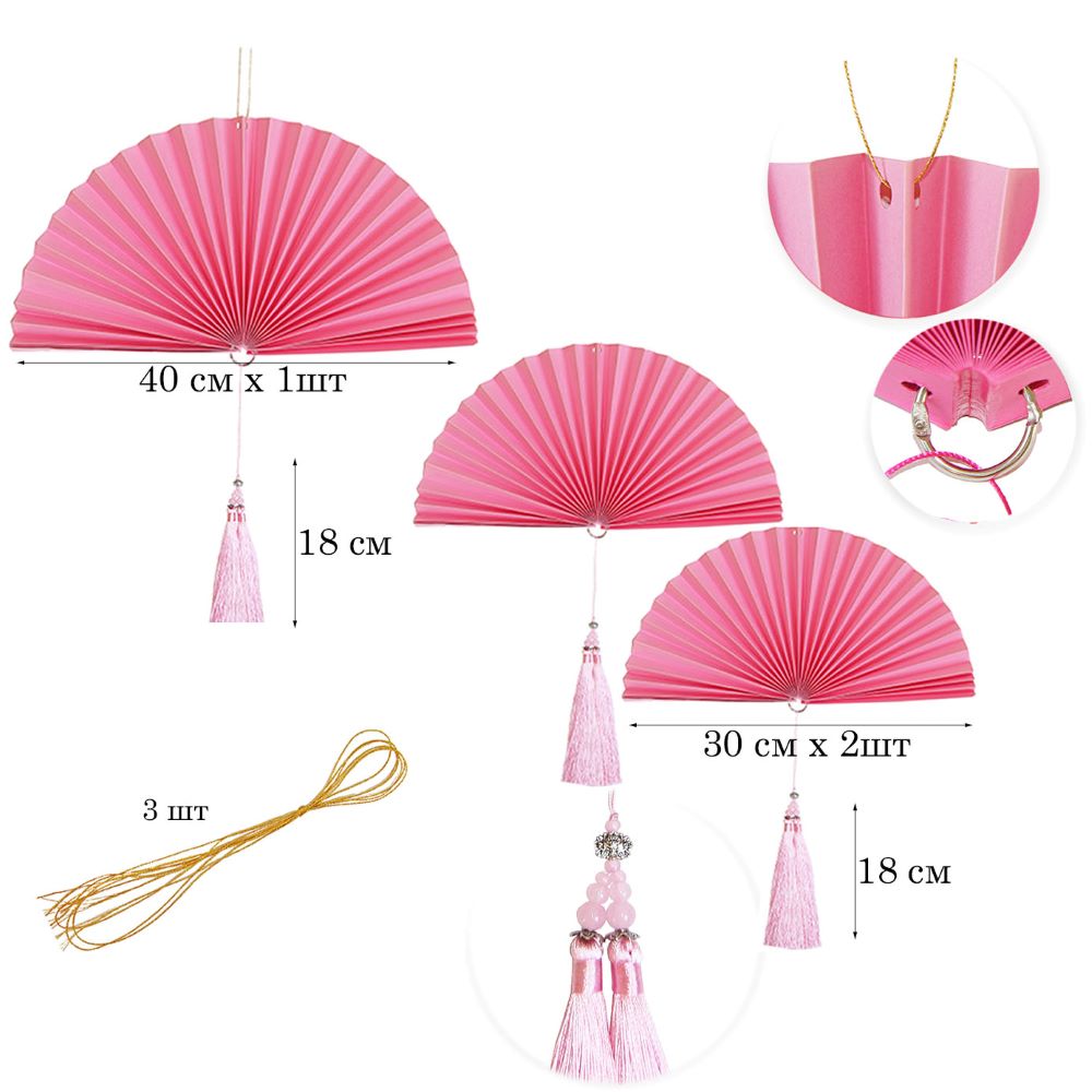 Комплект дополнен лентой для крепления и прочными шнурами для подвешивания вееров.