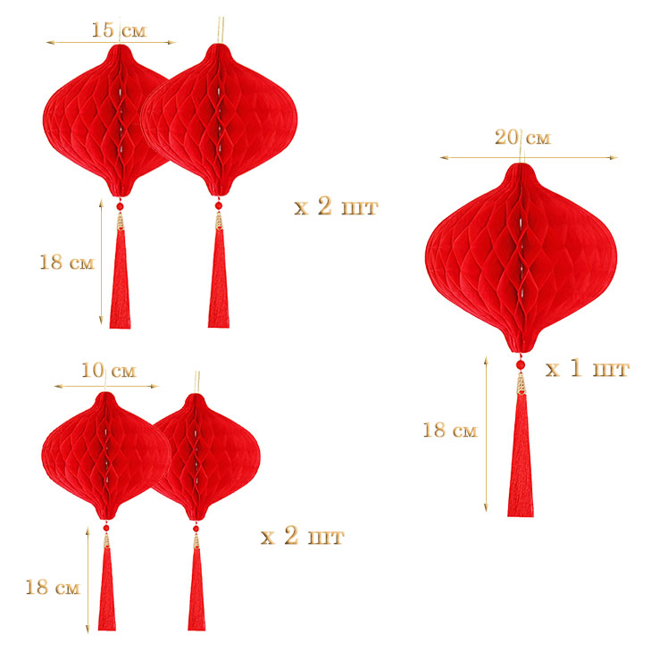 Набор украшений для праздника №72 включает пять шаров-сот и три веера-гармошки.