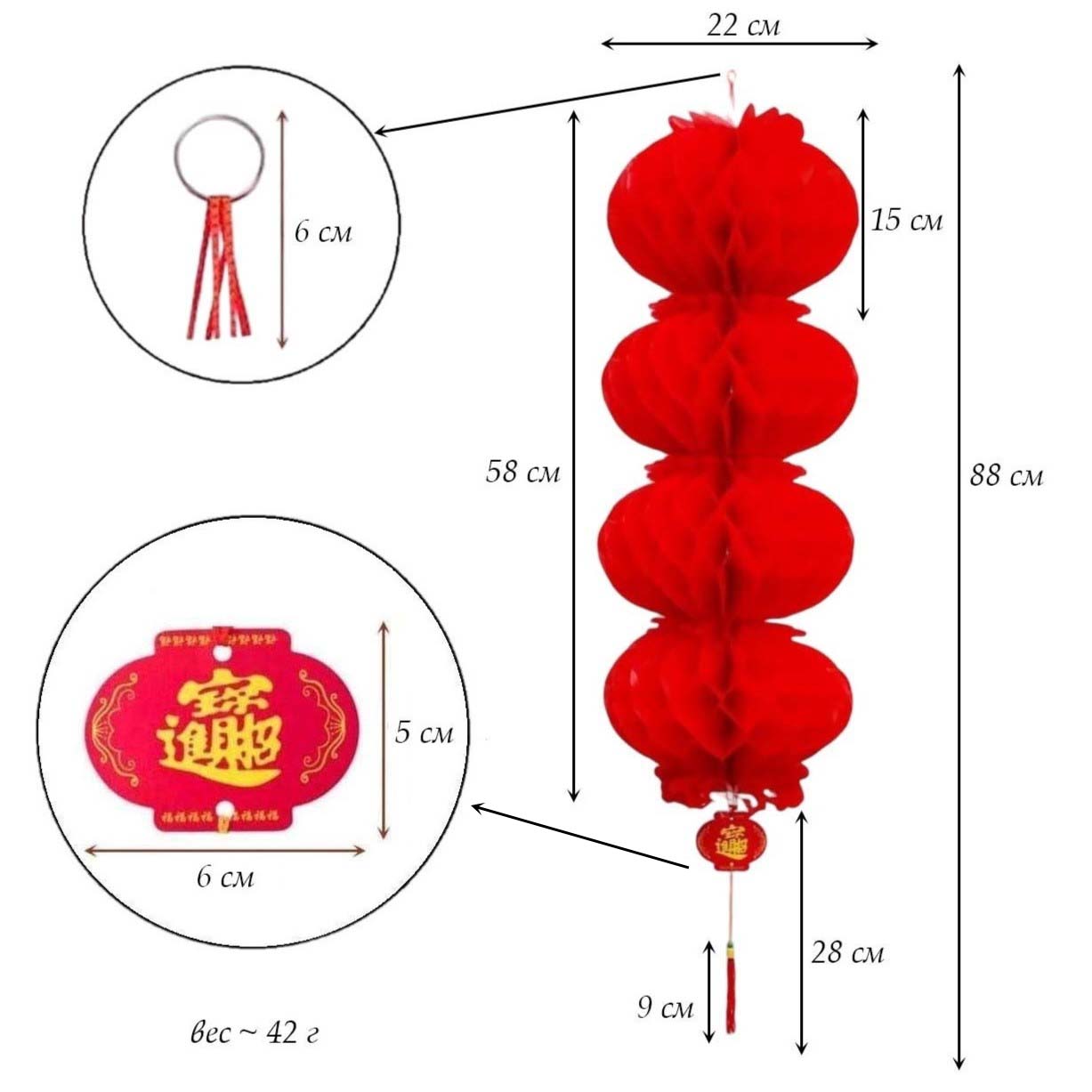Материал: Красные бумажные фонарики изготовлены из высококачественной водонепроницаемой пластиковой бумаги. Они могут сохранять идеальную форму при длительном использовании.