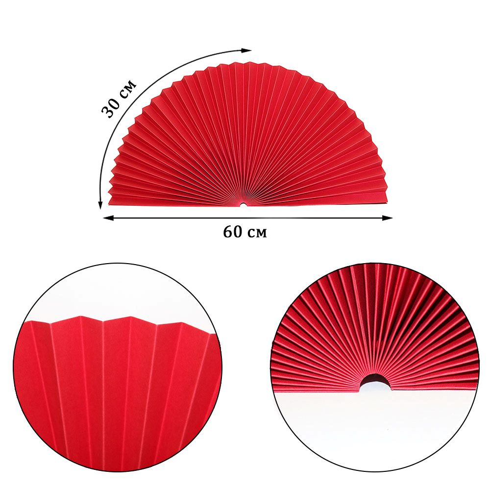 Веер-гармошка 180г/м 60 см, красный