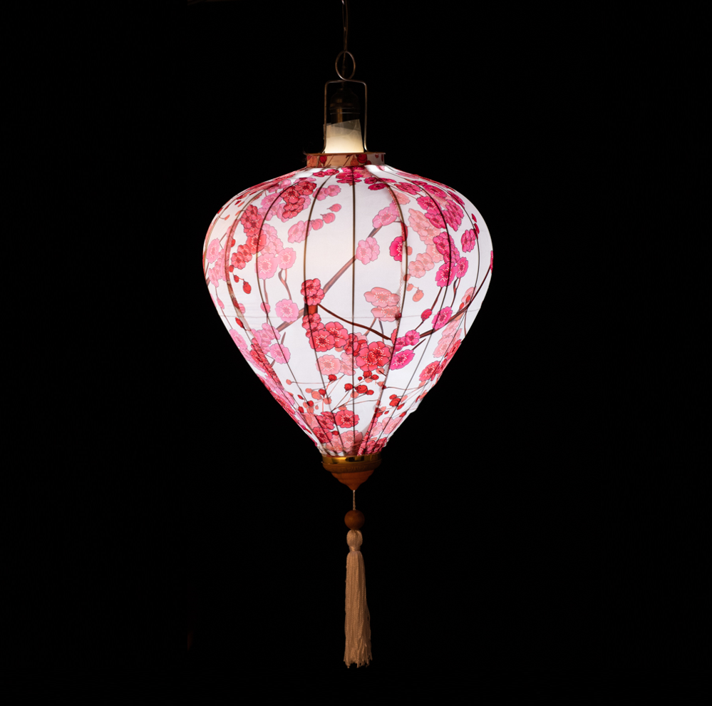 Это традиционные подвесные фонарики ручной работы, изготовленные из шелкового материала с элегантным цветочным узором, которые делают его изысканным и красивым.