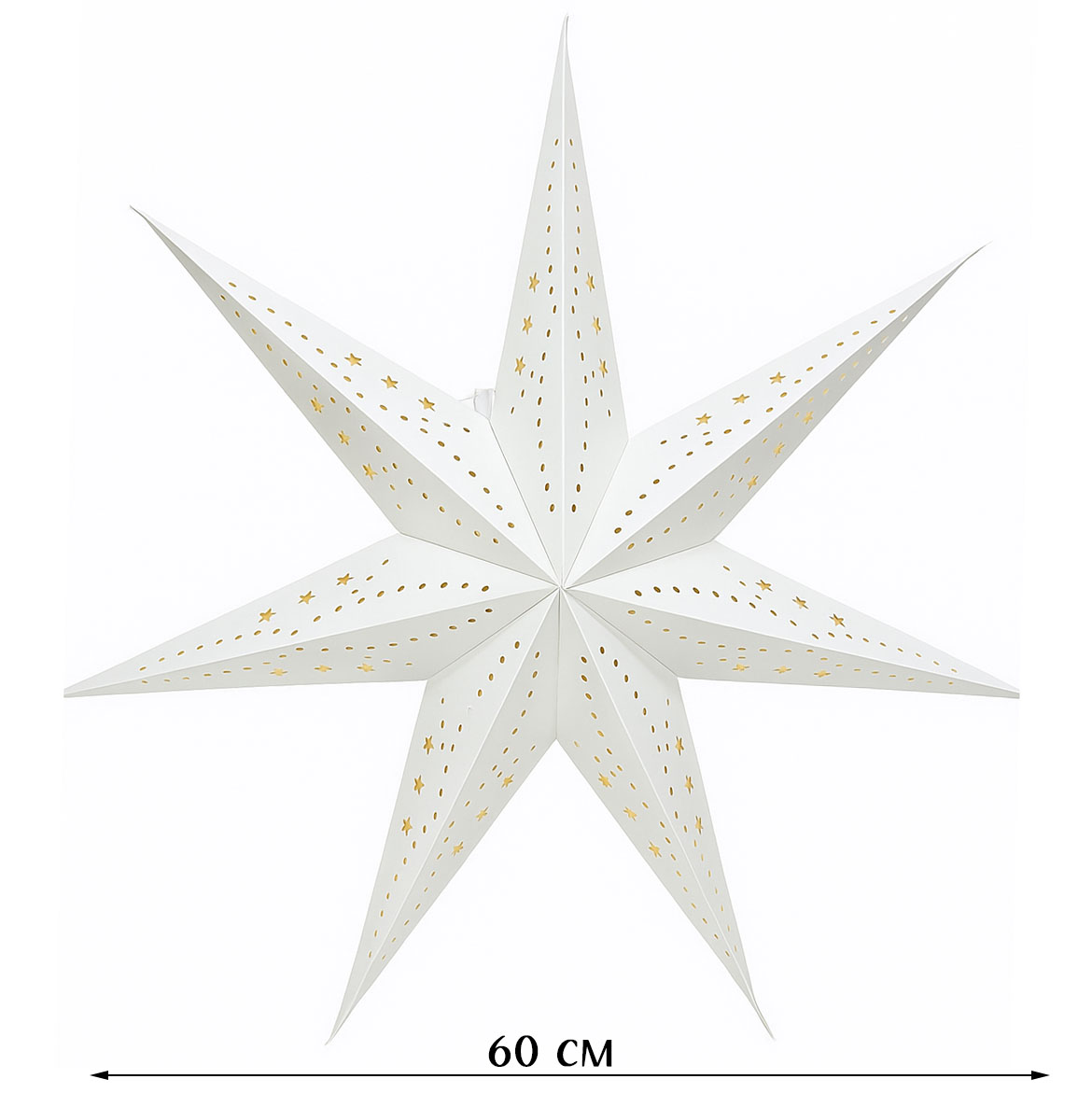 Звезда семиконечная бумажная 60 см, Звезды и кружочки, белый